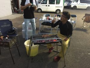 いつもは近くの割烹で行っていましたが、たまにはバーベキューも良いかと会社の駐車場で開催いたしました。