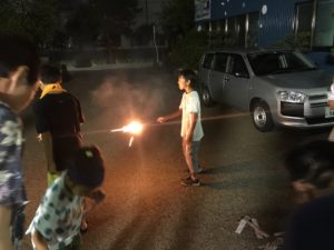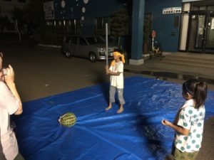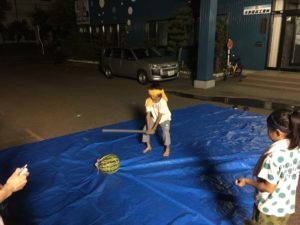 皆さん全員、楽しそうで参加した子どもたちは、花火にスイカわりを行いないました。