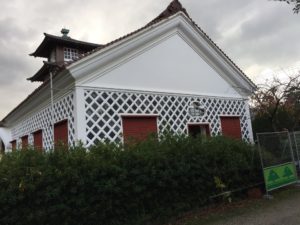 建物を守る放水ノズル。(景観に合わせ色は茶色とのこと。)