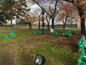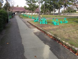 当初は地下式の防火水槽を設置する予定だったのが、地中に遺跡があった為に地上式に変更になったそうです。