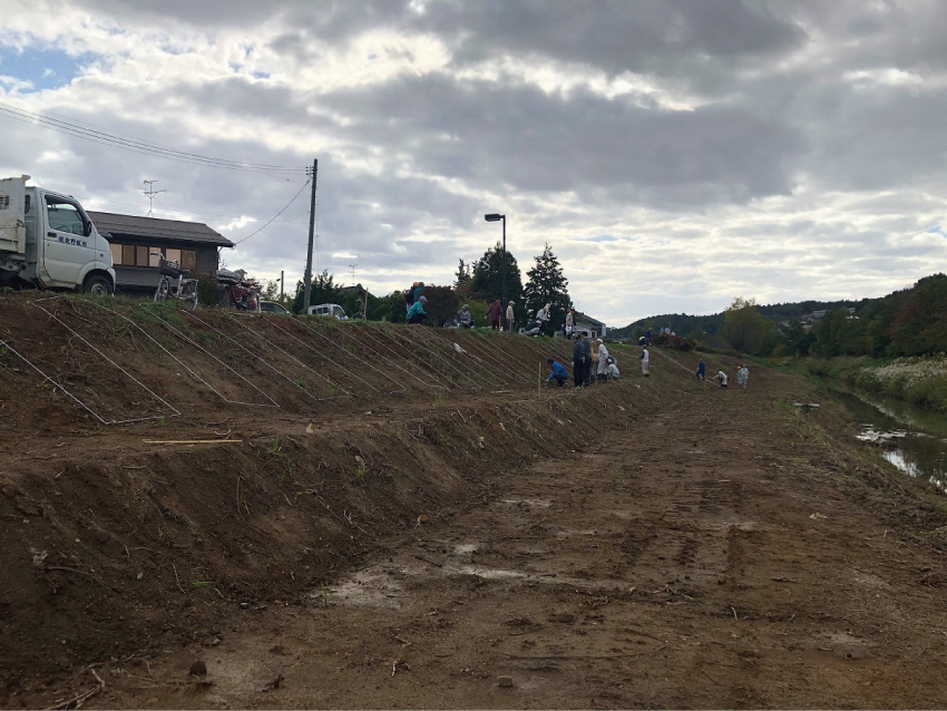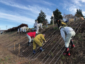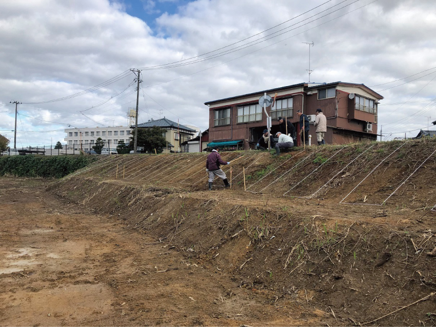 その前段の本日に、地元建設業及び周辺地域の皆様と植栽の目印となる地縄張りを行ってまいりました。