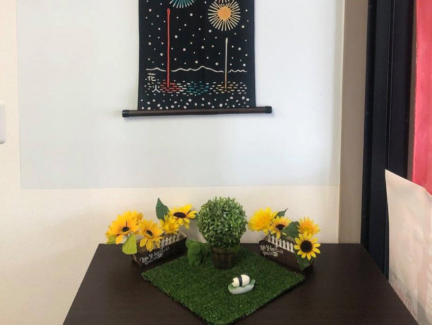8月からの飾付です。 2021年8月20日 最終更新日時 : 2022年3月15日 大宗建設工業 株式会社 少し投稿が遅れましたが8月の飾付に変更されました。早く日本中どこでも花火が上げられる未来を願って今月のテーマは「花火」です。 「花火」 「花火」