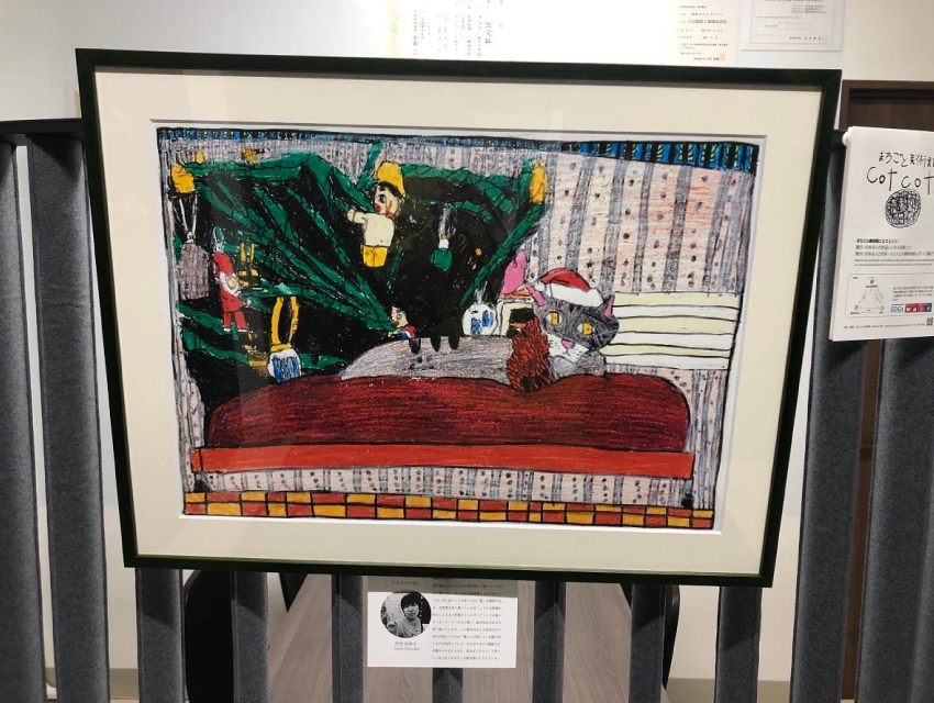 12月からのアート作品。今回の作品は西須 奈津子さんの「クリスマスとねこ」です。