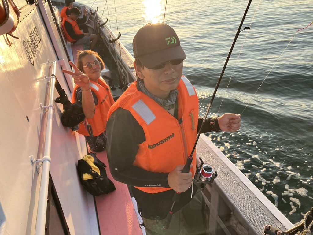 朝3時半に会社集合、現地受付が4時半からで5時に網代漁港から出向いたしました。