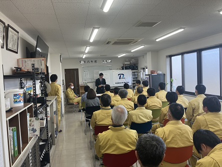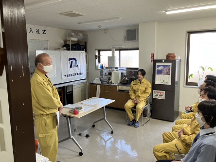 今日から新年度がスタートいたします。弊社では今年、新卒者を1名採用いたしましたので入社式と令和6年度の最初の朝礼を開催いたしました。