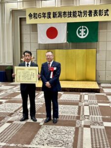 新潟市技能功労者表彰式がホテルイタリア軒で開催されました。弊社からは、片岡俊雄君が30年以上の経験と優れた技能を持ち、他の技能者の模範となるとの事で、今回、表彰されました。 感謝申し上げます。これからも技能の錬磨、後進の […]